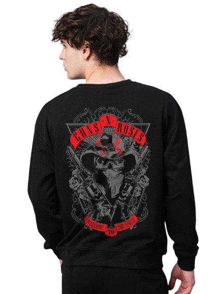 Show off your rock ’n’ roll spirit with this black Guns N’ Roses graphic sweatshirt. Featuring a striking back print inspired by the legendary band’s iconic “Welcome to the Jungle” era, it blends music nostalgia with modern streetwear appeal. Made from a soft, durable cotton blend, this crewneck delivers both comfort and style, perfect for casual days, concerts, or making a bold statement wherever you go.